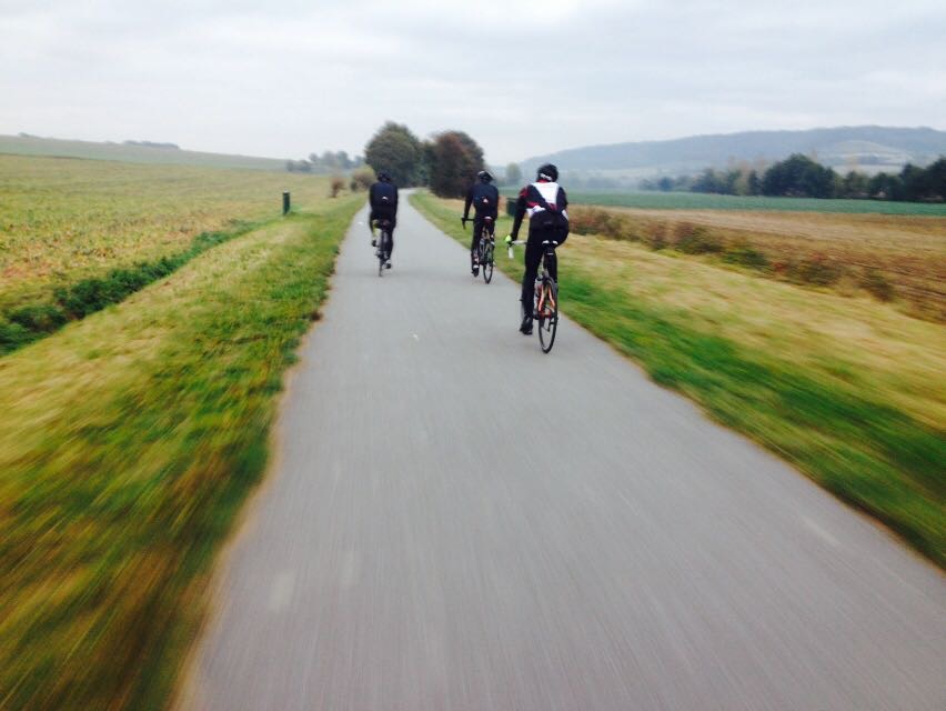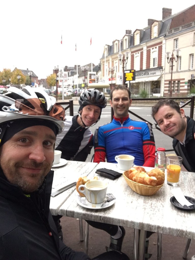 It was still dark and pretty cold when we set off from near the port at around 7am. Andy navigated us through the quite streets of Dieppe and after a couple of minor corrections we found the “Avenue Vert”, the cycle route which would take us for thirty miles along a disused railway line to Forges-les-Eaux.